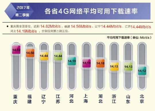 根據(jù)本次報(bào)告,除西藏自治區(qū)外,全國(guó)其他所有省級(jí)行政區(qū)域固定寬帶平均下載速率均超過(guò) 12Mbit/s,上海、北京、遼寧率先超過(guò)或達(dá)到了 15Mbit/s,位列全國(guó)前三,山東、江蘇緊隨其后。在直轄市和省會(huì)城市固定寬帶下載速率排行榜上,上海、北京、濟(jì)南、天津、福州位居前五位。從移動(dòng)寬帶網(wǎng)速狀況看,重慶、福建、遼寧、江蘇、河北的 4G 網(wǎng)絡(luò)用戶下載速率排在全國(guó)省級(jí)行政區(qū)前五位;不同電信運(yùn)營(yíng)企業(yè)中,中國(guó)聯(lián)通的 3G 網(wǎng)絡(luò)用戶下載速率和 4G 網(wǎng)絡(luò)用戶下載速率均最高,分別達(dá)到 5.20 Mbit/s 和 15.05 Mbit/s。